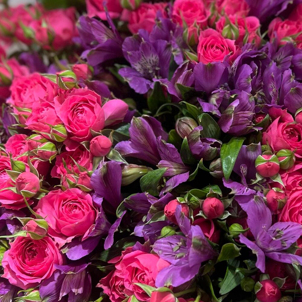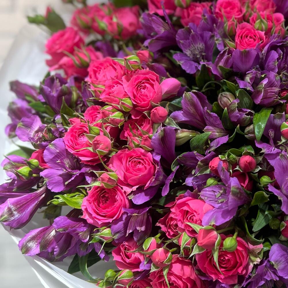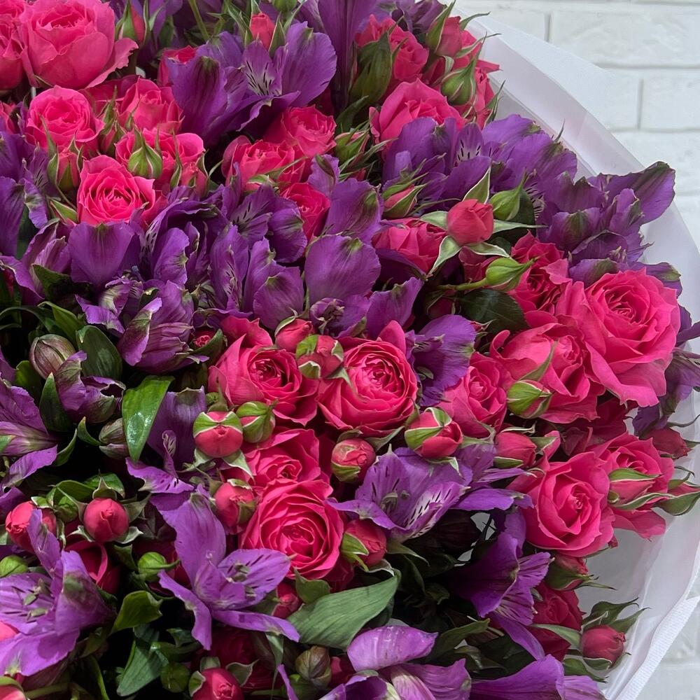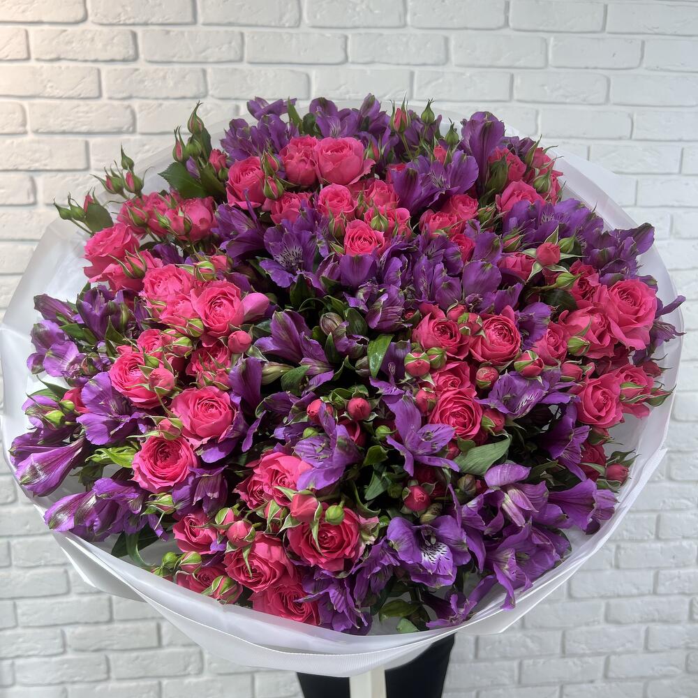 Альстромерия - 11 шт. Оформление - 6 шт. кустовые спрей розы - 10 шт.