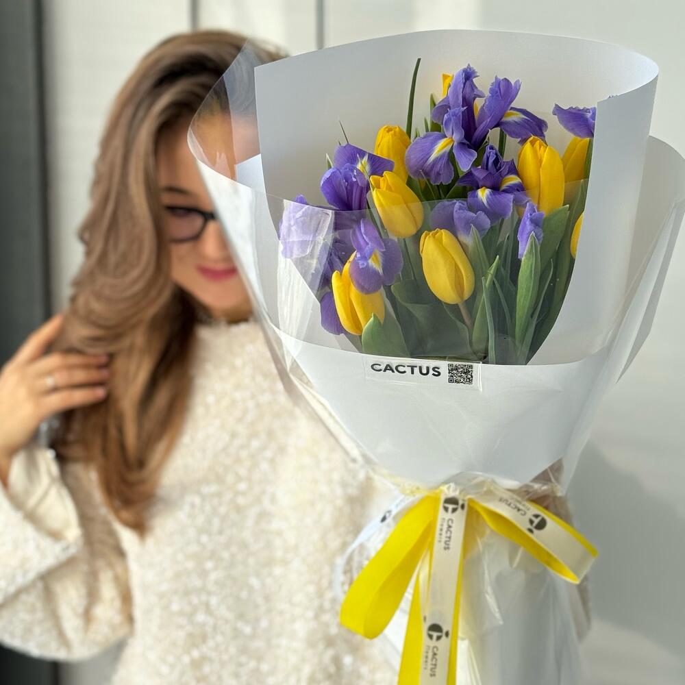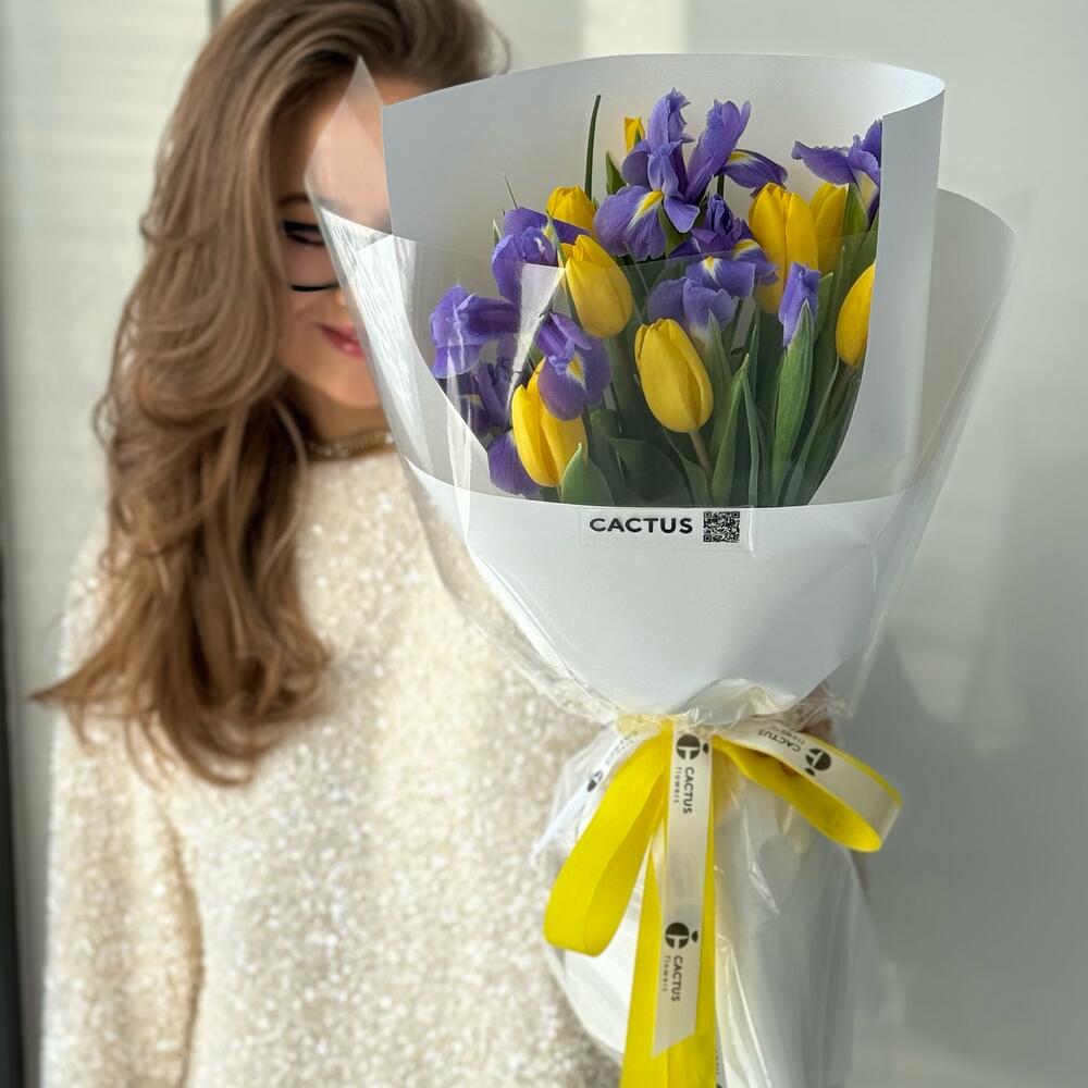 Ирис - 7 шт. Тюльпан - 8 шт. Упаковка дизайнерская - 1 шт.