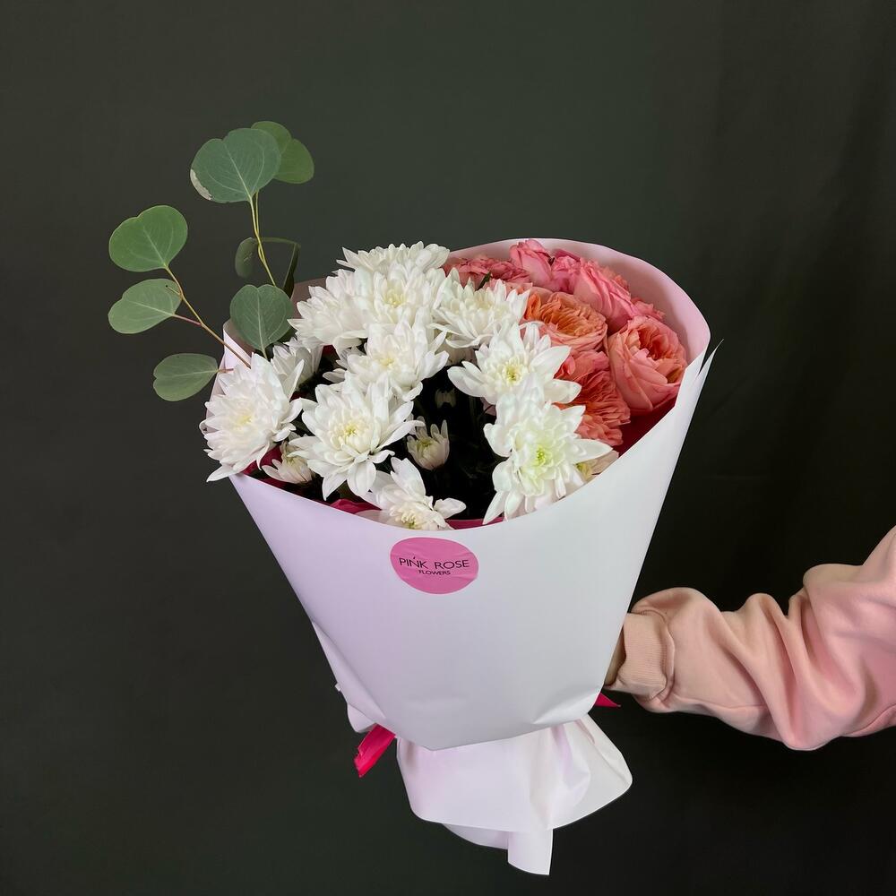 Хризантема кустовая - 3 шт. Роза - 6 шт.