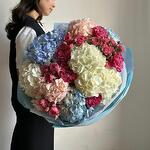 Этот авторский букет станет уникальным подарком для любого повода. В его состав входят 7 пышных гортензий, украшающих букет своим ярким и прикосновенно нежным окрасом. Дополняют картину 5 пионовидных роз, словно воплощение нежности и романтики. В заключение, 5 кустовых роз добавляют букету шик и изысканность, делая его по-настоящему королевским. Этот букет - симбиоз красоты и стиля, он точно подчеркнет тонкость вашего вкуса.