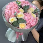 Гортензия - 3 шт. Эвкалипт - 1 шт. сортовые розы - 7 шт.