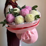 Букет из 7шт одноголовых хризантем с эвкалиптом, в котором соединились эмоции, вдохновение и красота. Создан, чтобы впечатлить и запомниться надолго