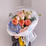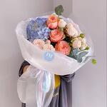 Гортензия - 1 шт. Эвкалипт - 1 шт. Кустовая роза - 3 шт. Пионовидная роза - 4 шт.