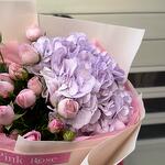 Гортензия - 1 шт. Кустовая роза - 6 шт. миша плюшевый - 1 шт.