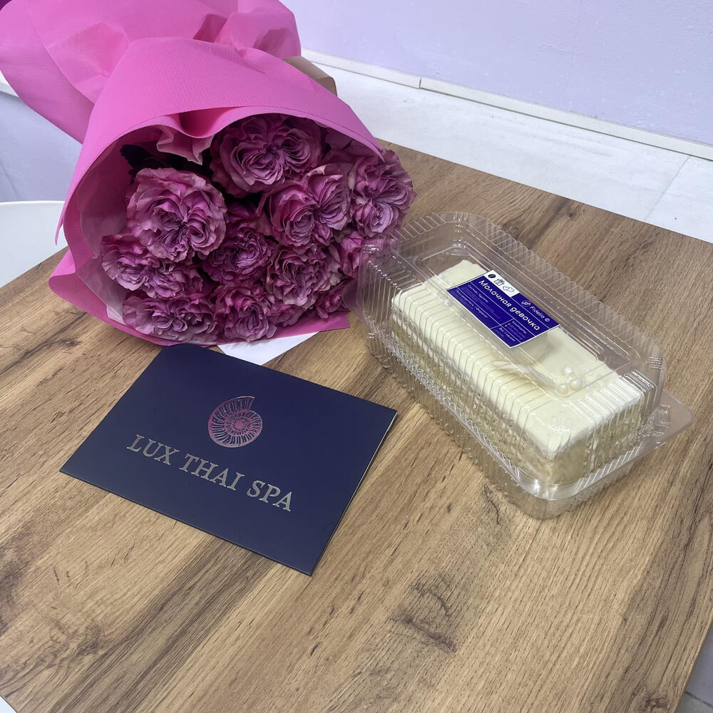 Букетик роз + сертификат THAI SPA + пласт тортик на выбор