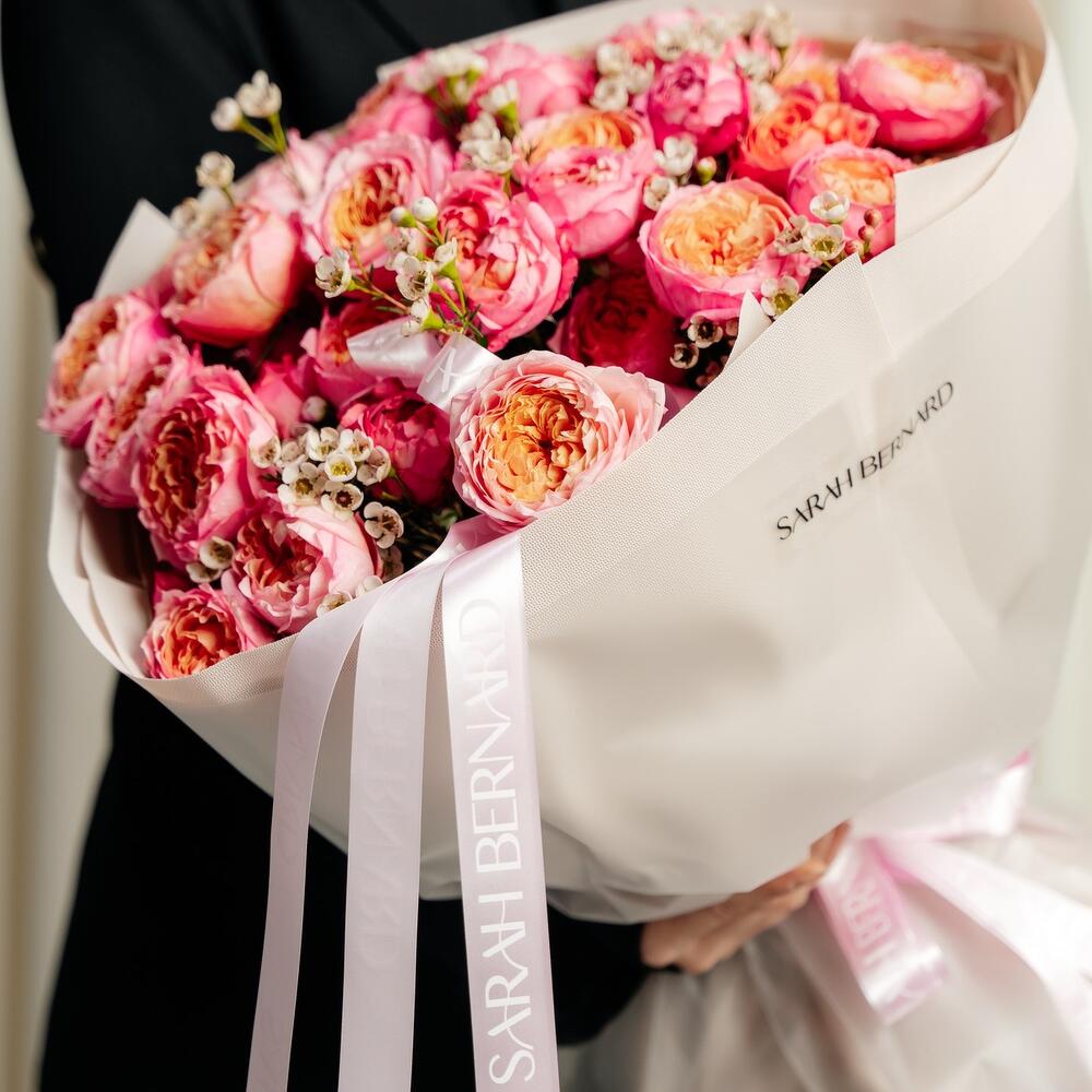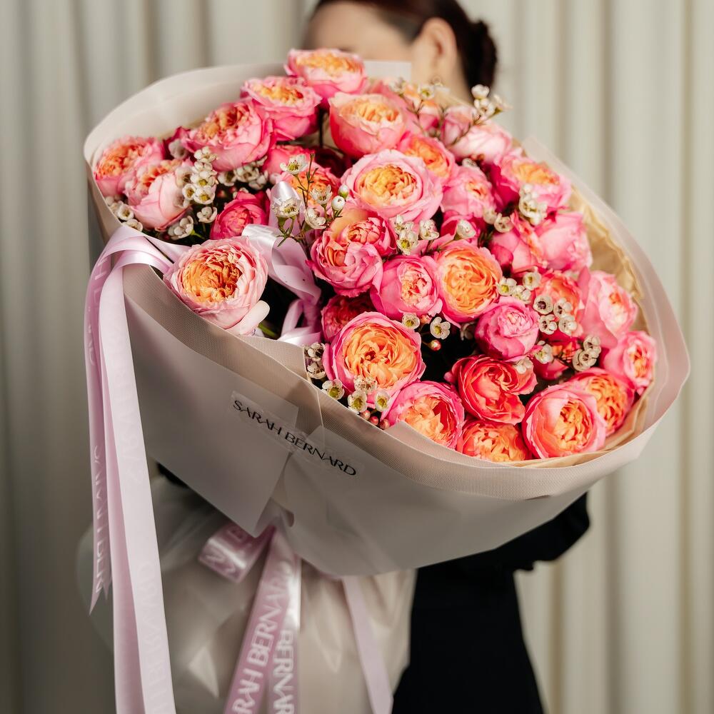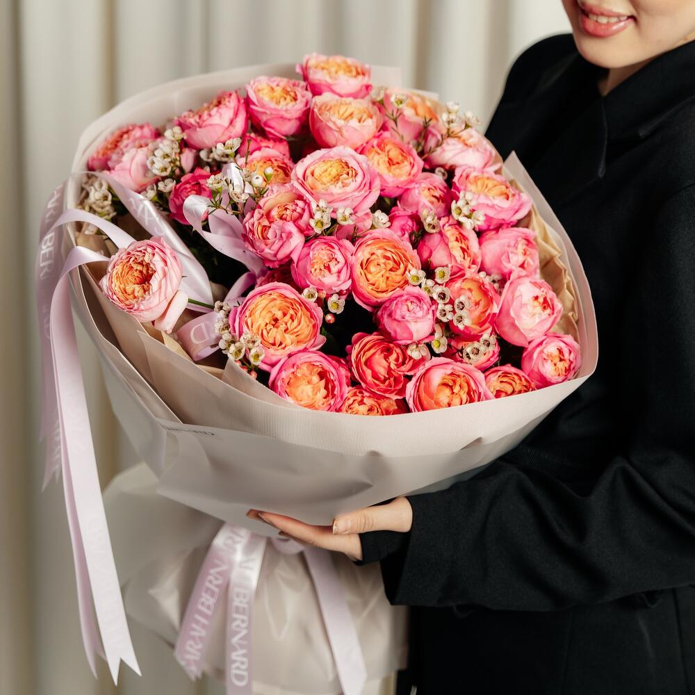 Ваксфлауэр - 5 шт. Оформление - 3 шт. джульетта кустовая роза пионовидная - 15 шт.