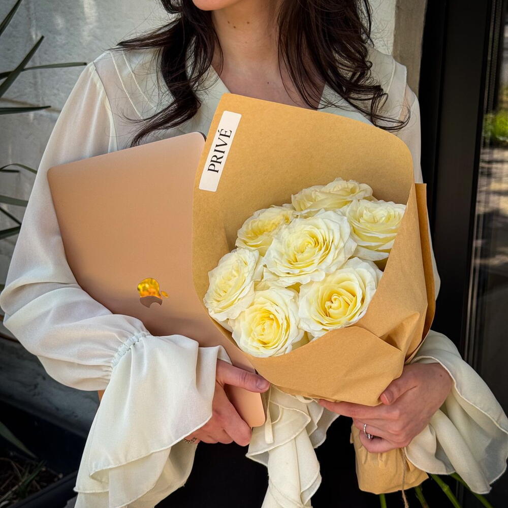 Оформление - 1 шт. пионовидная роза сорта candlelight - 7 шт.