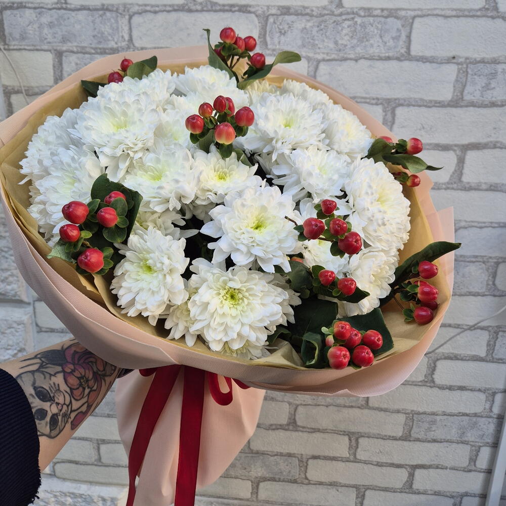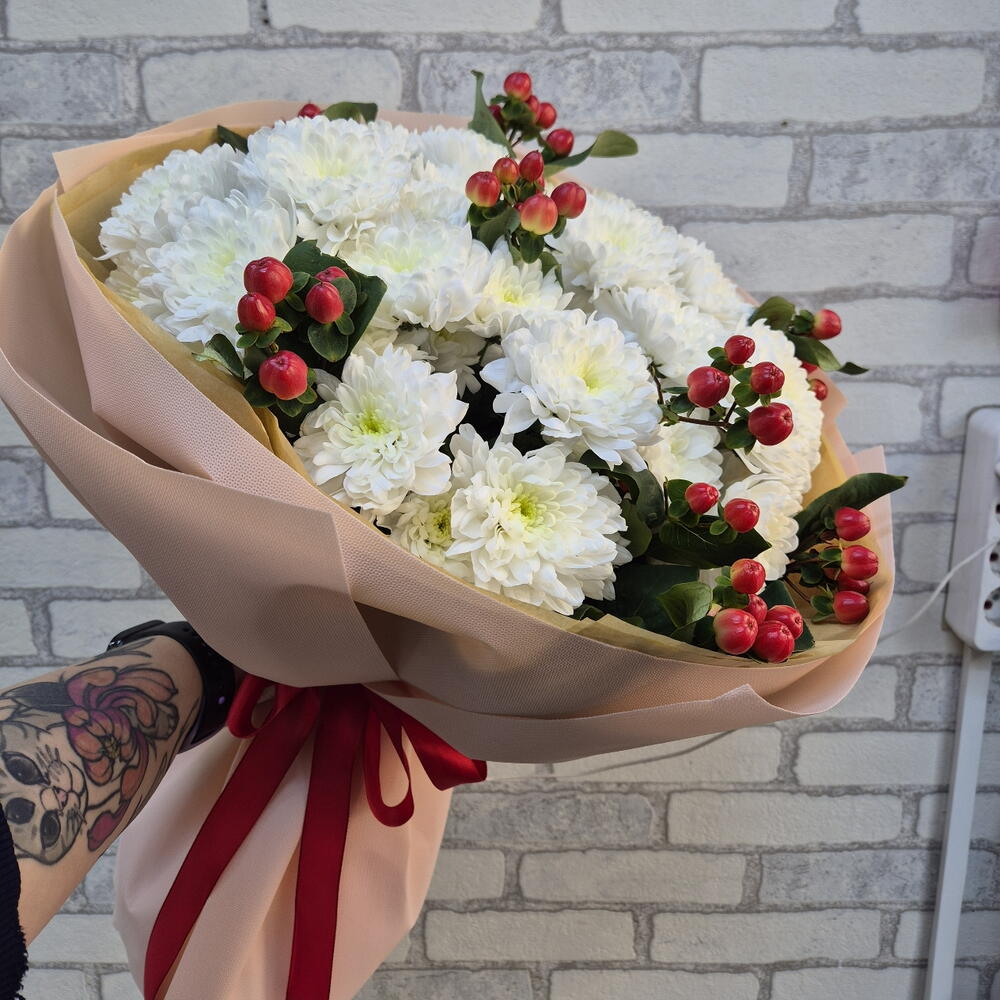 Гиперикум - 4 шт. Хризантема кустовая - 5 шт.