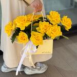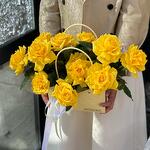 Роза - 13 шт. Упаковка дизайнерская - 2 шт. Оазис флористический - 1 шт. сумочка с ручками из плотного картона ламинированного - 1 шт.