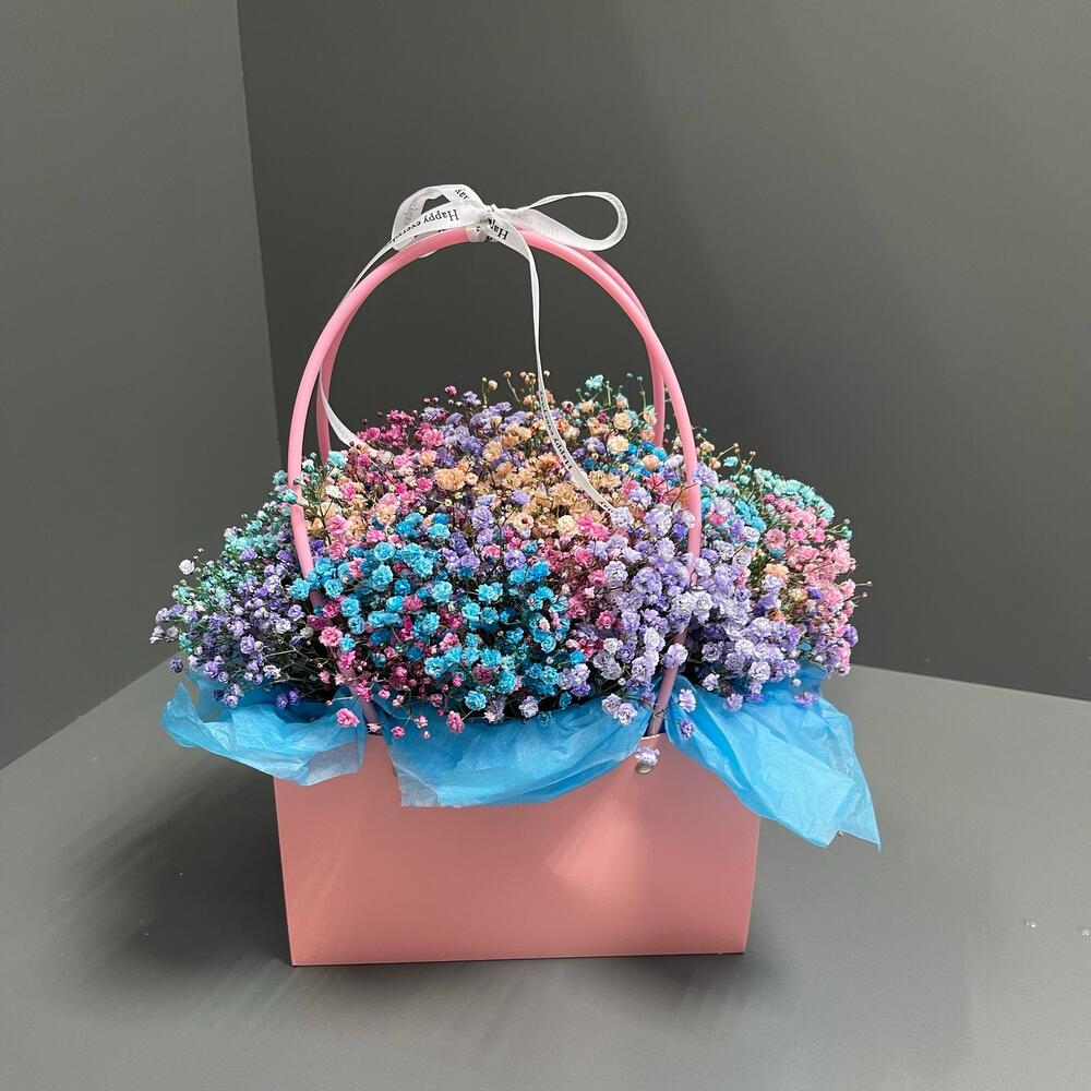 Цветочная композиция в сумке из гипсофил