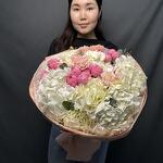 Гортензия - 7 шт. Кустовая роза - 10 шт. Лента атласная - 1 шт. Упаковка дизайнерская - 5 шт.