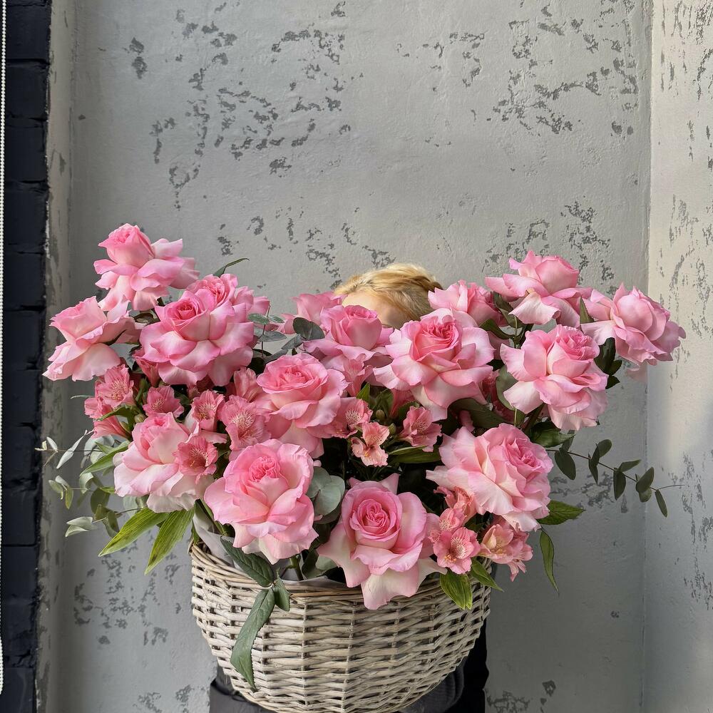Роскошная корзина, наполненная пышными розовыми розами и альстромериями, словно созданная для особых и ярких событий. Композиция источает нежность и чувственность, подчеркивая элегантность и щедрость чувств. В составе: крупные розовые розы, альстромерии и декоративная зелень. Оформлена в изысканную плетёную корзину, идеально дополняющую стиль букета. Подойдет для: роскошного подарка, юбилея, годовщины, важного события или впечатляющего признания. 🌺 Красота, перед которой невозможно устоять.
