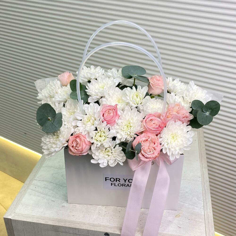 Хризантема кустовая - 3 шт. Эвкалипт - 1 шт. Кустовая роза - 2 шт.