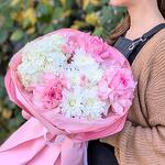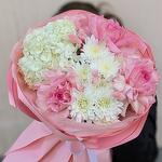 Гортензия - 1 шт. Хризантема кустовая - 2 шт. Роза - 3 шт. Лагурус - 6 шт.