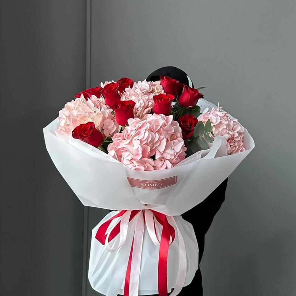 Гортензия - 5 шт. Роза - 11 шт. Оформление - 1 шт.
