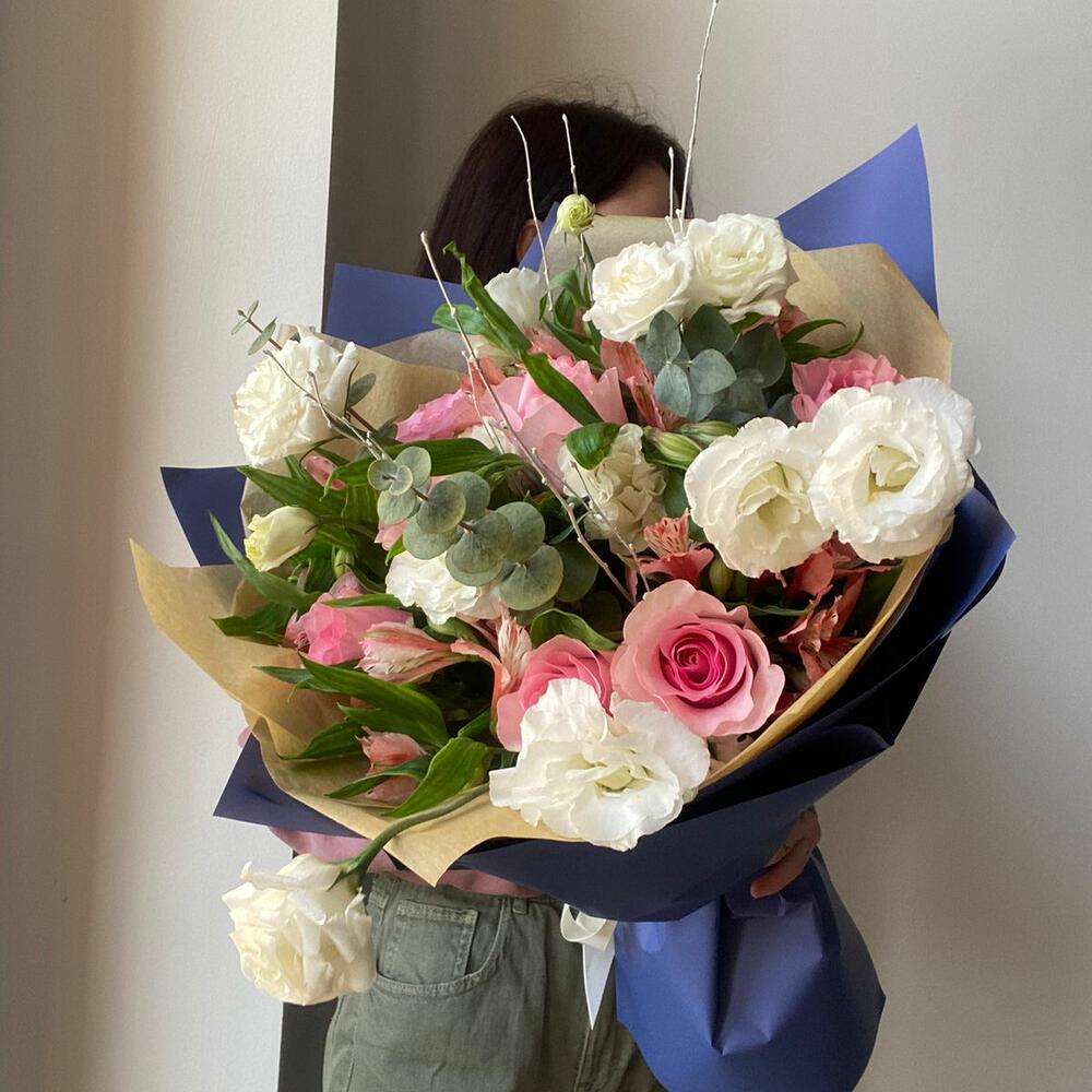 Альстромерия - 2 шт. Роза - 7 шт. Эустома - 4 шт.