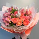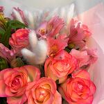 Альстромерия - 3 шт. Роза - 9 шт. Оформление - 1 шт. Лагурус - 1 шт.