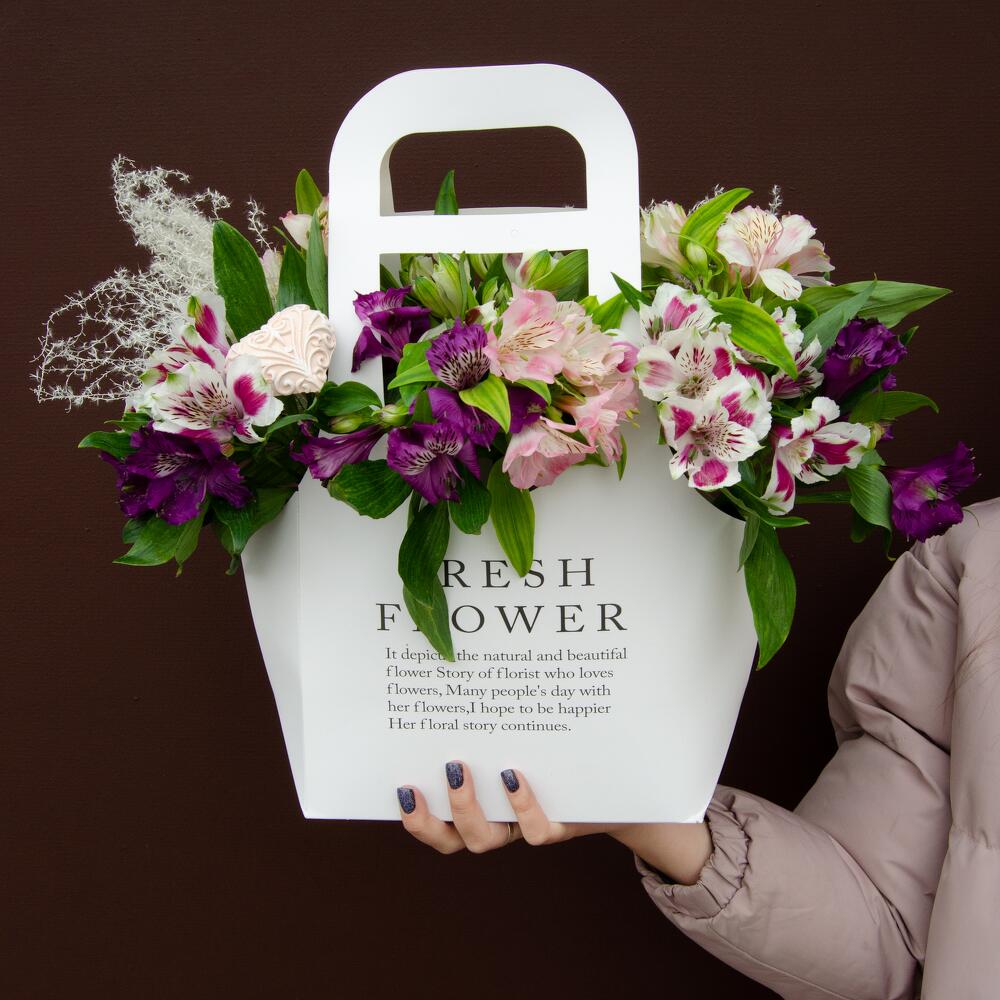 Альстромерия - 11 шт. Оазис - 1 шт. Сумка - 1 шт. мискантус - 1 шт.