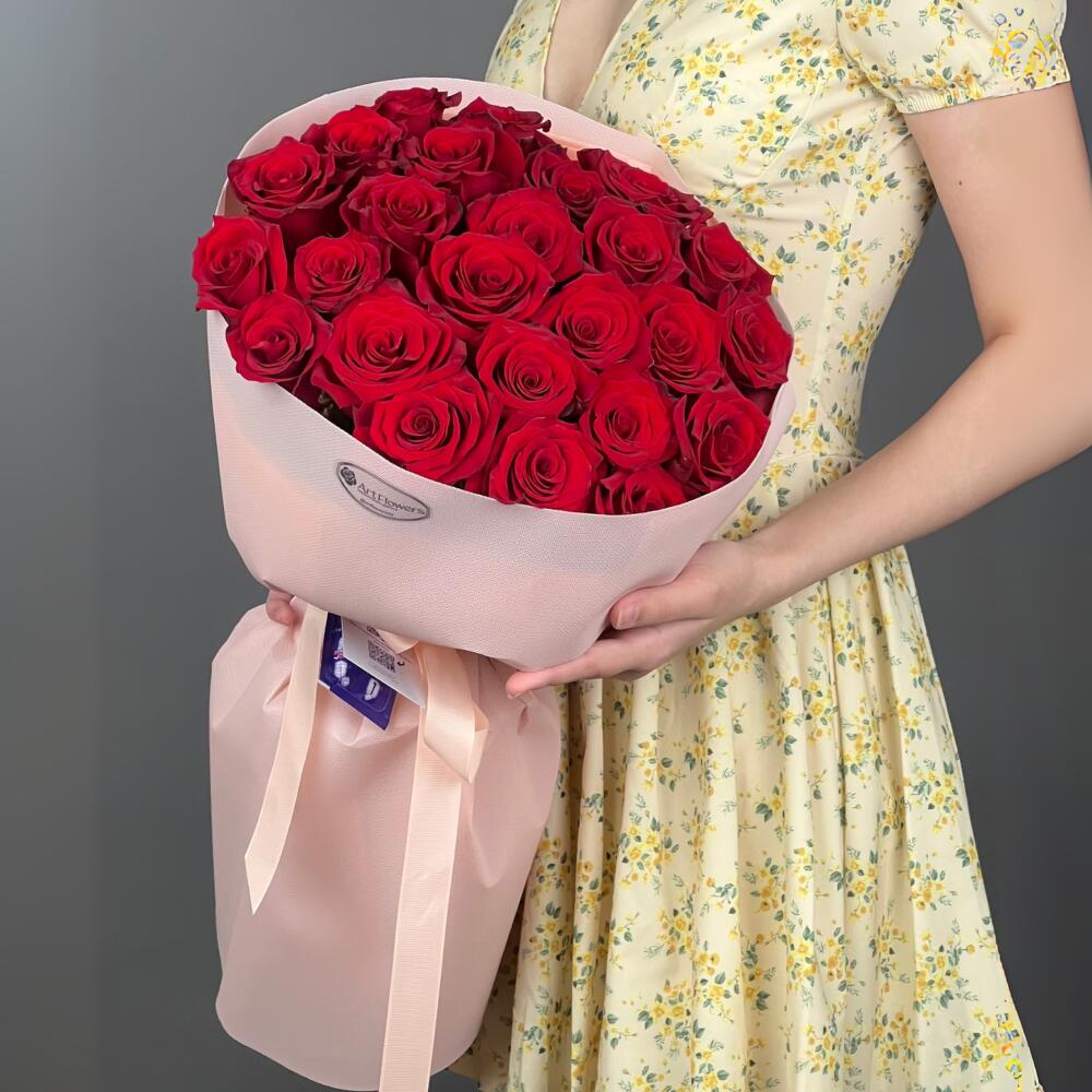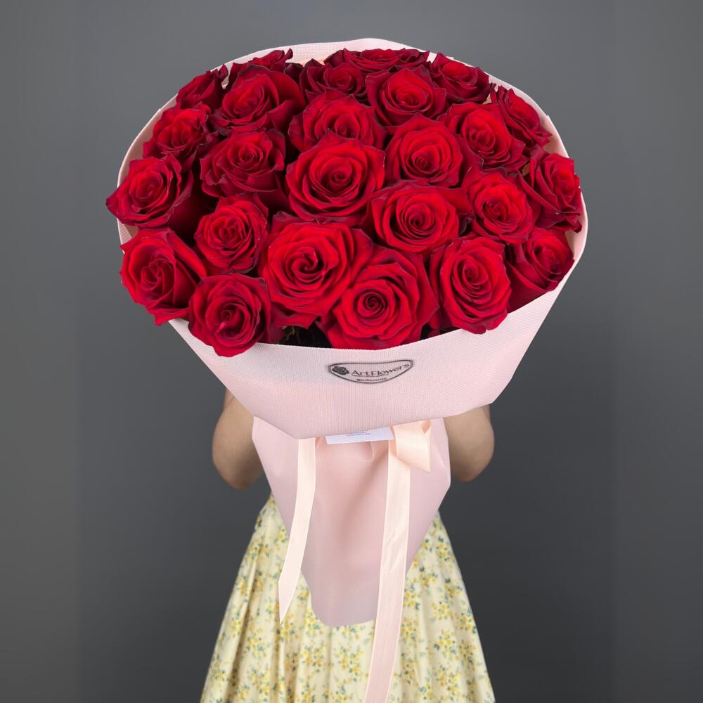 Цветы Букет Art Flowers 25 нежных красных роз 50 см