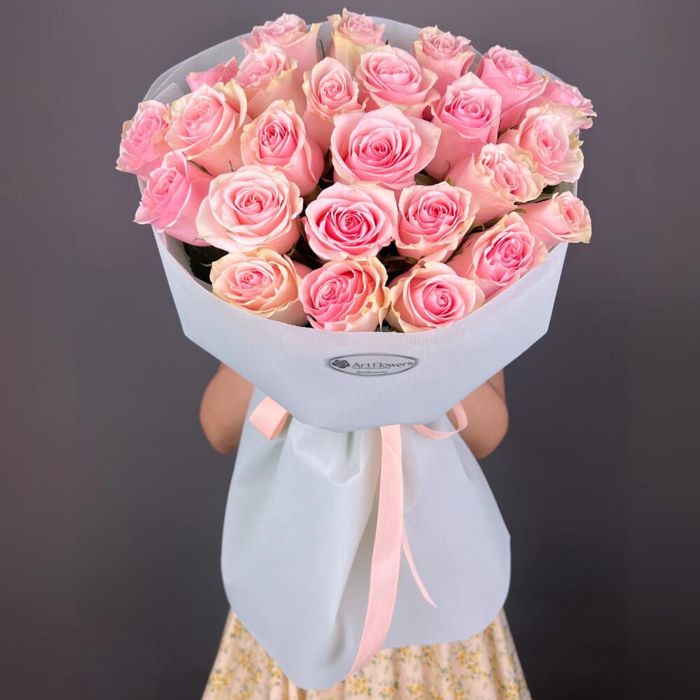 Цветы Букет Art Flowers 25 нежных розовых роз 50 см