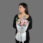 **Букет «Ранункулюсовая сказка»** Лёгкий, романтичный и воздушный букет из ранункулюсов с добавлением эвкалипта. Эти цветы, миниатюрные пионы, создают ощущение уюта и нежности.
