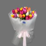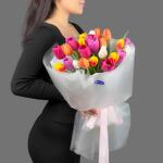 Роскошный букет из тюльпанов самых жизнерадостных оттенков. Его яркость и свежесть говорят громче слов – просто подари настроение!