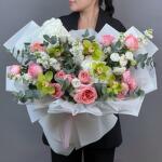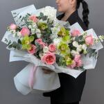 Лёгкий, как па-де-де на рассвете. Этот букет — про утончённость и изящество: будто танец света и аромата. Орхидеи — как акценты в вальсе, матиолла добавляет мягкости, а белые лизиантусы и розы создают ощущение чего-то возвышенного и почти небесного. Дарите его тем, чьё присутствие — уже праздник.