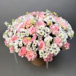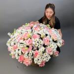 Этот букет не просто большой — он огромный и ошеломляюще красивый. Нежные оттенки розового и белого в объёме, который говорит: «Я действительно тебя ценю». Подарок, который невозможно не заметить. Для самого важного человека — без компромиссов.