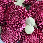 Насыщенные бордовые хризантемы создают атмосферу страсти и роскоши. Каждый цветок раскрывает глубину тона и элегантность формы.