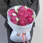 Стильный букет из винных хризантем «бигуди» — компактный, выразительный и с характером. Отличный выбор, если хочется удивить изысканным оттенком.