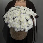Пышная корзина из свежих хризантем — белый как символ чистоты и гармонии. Создаёт атмосферу уюта и душевного тепла.