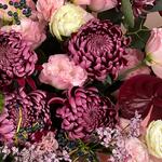 Антуриум - 2 шт. Вибурнум - 2 шт. Лизиантус - 7 шт. Лимониум - 2 шт. Хризантема - 7 шт. Диантус - 2 шт.