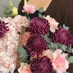 Пышный и воздушный букет в пудрово-винной гамме — воплощение романтики и лёгкости. Отлично подойдёт для подарка невесте, подруге, коллеге или маме. Каждый цветок подобран так, чтобы подчеркнуть изысканность композиции.