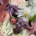 Астильба - 5 шт. Ваксфлауэр - 3 шт. Гортензия - 5 шт. Сирень - 5 шт. Роза - 9 шт. Гвоздика - 5 шт. Роза Джульетта - 3 шт.