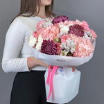 Букет, в котором бордовый встречает персиковый — как страсть и нежность в одном дыхании. Сбалансированный, глубокий, гармоничный. Подойдёт для признаний, юбилеев, важных встреч и просто тех, кто заслуживает особенного жеста