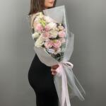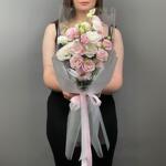 Романтичный букет в оттенках зари. В нём смешались нежность и лёгкая интрига — идеален для свидания, признания в любви или благодарности близкому человеку.