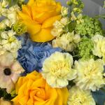 Вибурнум - 3 шт. Гортензия - 1 шт. Маттиола - 3 шт. Роза - 3 шт. Гвоздика - 5 шт. Ранункулюс - 1 шт.