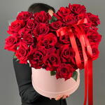 Иногда слова не нужны. Этот букет говорит сам за себя: страсть, любовь, восхищение. Глубокий красный цвет, плотная сборка и эффект «вау» с первого взгляда. Это тот самый букет, который заставляет сердце биться быстрее.