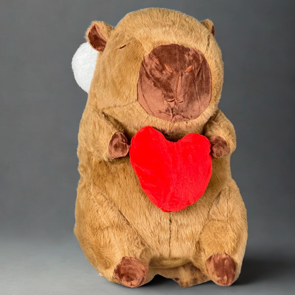 Плюшеая капибара с красным сердцем — символ внимания и тёплых чувств. Отлично дополняет цветочную композицию или подходит как самостоятельный знак заботы.
