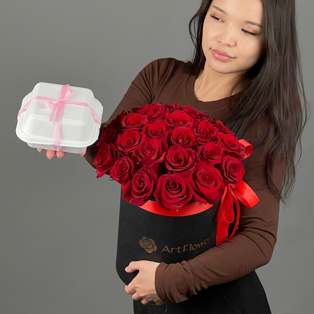 Роза - 25 шт. бенто торт молочная девочка - 1 шт.