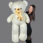 Крупный плюшевый медведь в светлом исполнении с аккуратной лентой. Выглядит солидно и эффектно, создаёт «вау-эффект» при вручении.