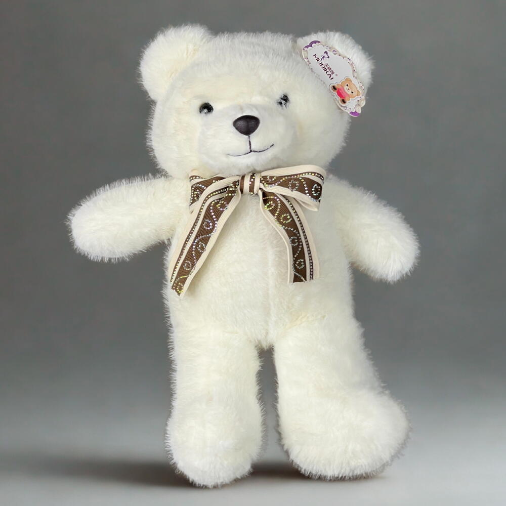 Мягкий плюшевый медведь в нейтральном исполнении. Универсальное дополнение к цветам или самостоятельный подарок.