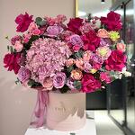Гортензия - 1 шт. Кустовая роза - 5 шт. Эустома - 7 шт. Эвкалипт пучок - 2 шт. Коробка брендированная - 1 шт. джульетта кустовая роза пионовидная - 3 шт. розы садовые - 13 шт.