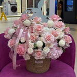 Гортензия - 3 шт. Маттиола - 3 шт. Кустовая роза - 4 шт. Роза одноголовая - 17 шт. Хризантема одноголовая - 5 шт.