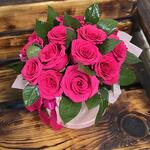 Лента атласная - 1 шт. Коробка шляпная - 1 шт. Оазис флористический - 1 шт. Тишью белое - 3 шт. роза пинкфлойд эквадор - 15 шт.
