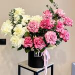 Роза белая - 6 шт. роза сортовая пионовидная - 10 шт.