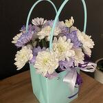 Хризантема кустовая - 3 шт. Лента атласная - 1 шт. Крафт пакет - 1 шт. открытка с вашими пожеланиями - 1 шт.