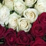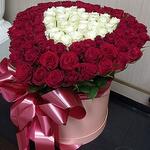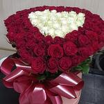 Роза красная - 71 шт. Роза белая - 30 шт. сердце для любимой - 101 шт.