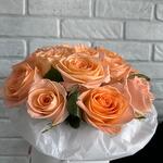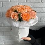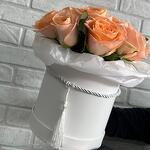 Роза - 15 шт. Коробка шляпная - 1 шт. Оазис флористический - 1 шт. Калька упаковка - 2 шт.