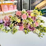 Лизиантус - 11 шт. Орхидея Цимбидиум - 5 шт. Диантус - 7 шт. Ранункулюс - 3 шт. коробка большая шляпная - 1 шт.